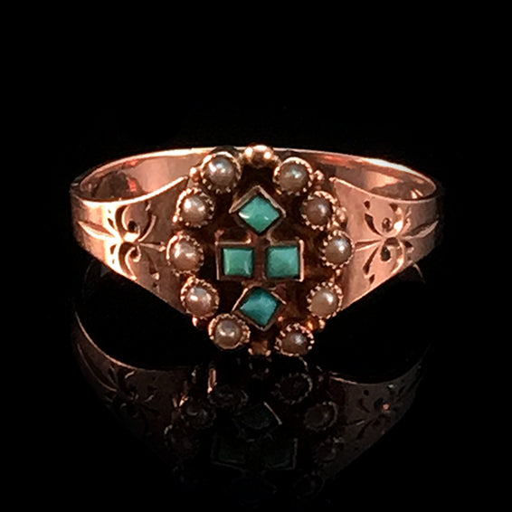 Victorian Turquoise and Pearl Ring, ANTIQUE