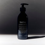 TU•ET•AL's liquid soap is crafted to deeply cleanse hands and body without drying out your skin. Infused with organic aloe vera juice for skin-soothing and antimicrobial benefits, complimenting our nourishing blend of organic saponified oils. Elysian Castile is environmentally safe and free from chemicals, alcohols, synthetic ingredients, and palm oil– our concentrated formula provides a rich lather with a single pump. The refillable bottle, made from durable European UV glass, is screen printed with silver ink.